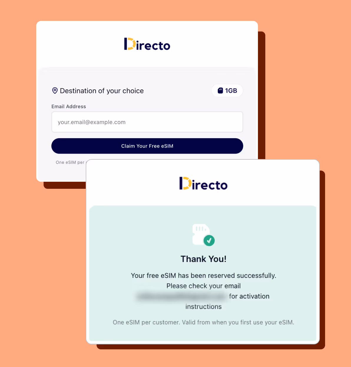 Apenas fazendo parte do Directo, você pode acessar um eSIM grátis para sua próxima viagem.