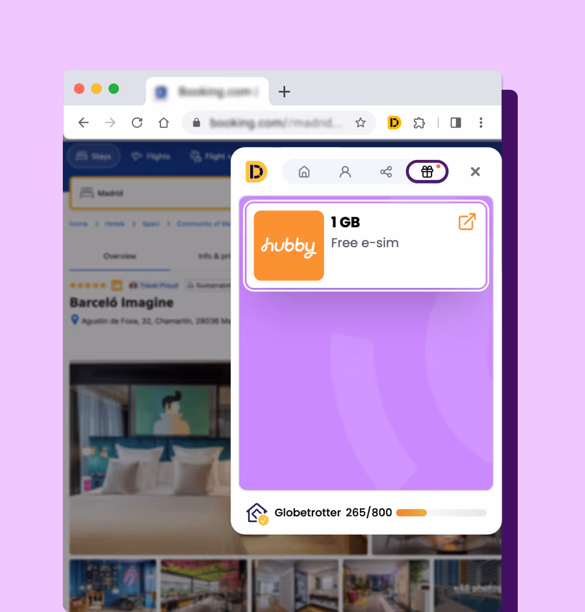 Dentro da extensão, você verá uma seção especial com seu link pessoal para solicitar seu eSIM gratuito.